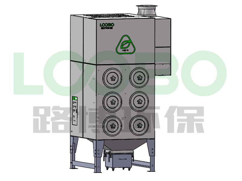 內設高精度濾筒過濾單元,專用于整個車間多個焊接工位產生煙塵的收集凈化。在離心風機負壓吸入的作用下,經過前端阻火裝置后,煙塵通過風管收集進入過濾器,經過濾筒充分過濾,凈化后的空氣可達標排放至室外或直接進入室內循環(huán)。隨著過濾工況持續(xù),聚集在濾筒表面的粉塵增多,此時脈沖控制儀按設定的脈沖周期和脈沖間隔控制電磁閥開啟,噴出高壓氣體,吹入濾筒內腔,抖落外表積塵,落入灰斗,經集灰盒排出。